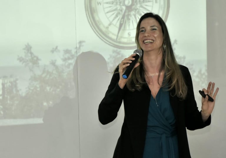 Marina Campos é especialista em desenvolvimento humano, focando em gestão de pessoas, liderança e inteligência emocional, oferecendo cursos e palestras para aprimoramento profissional e crescimento pessoal.